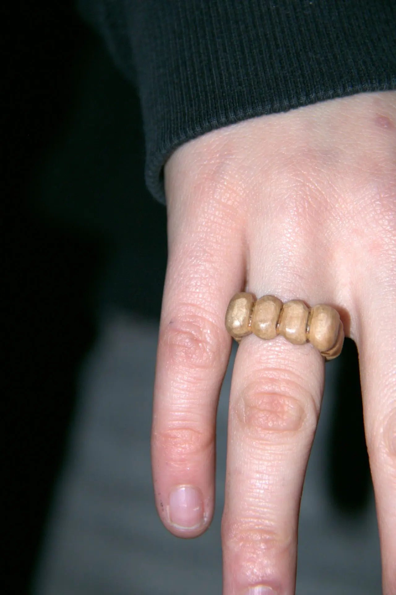 Bague en sycomore. Verni hypoallergénique. Confectionnée en France par un artisan bijoutier. La face de l'ombre, partir de la répétition, l'oeuvre adaptée.